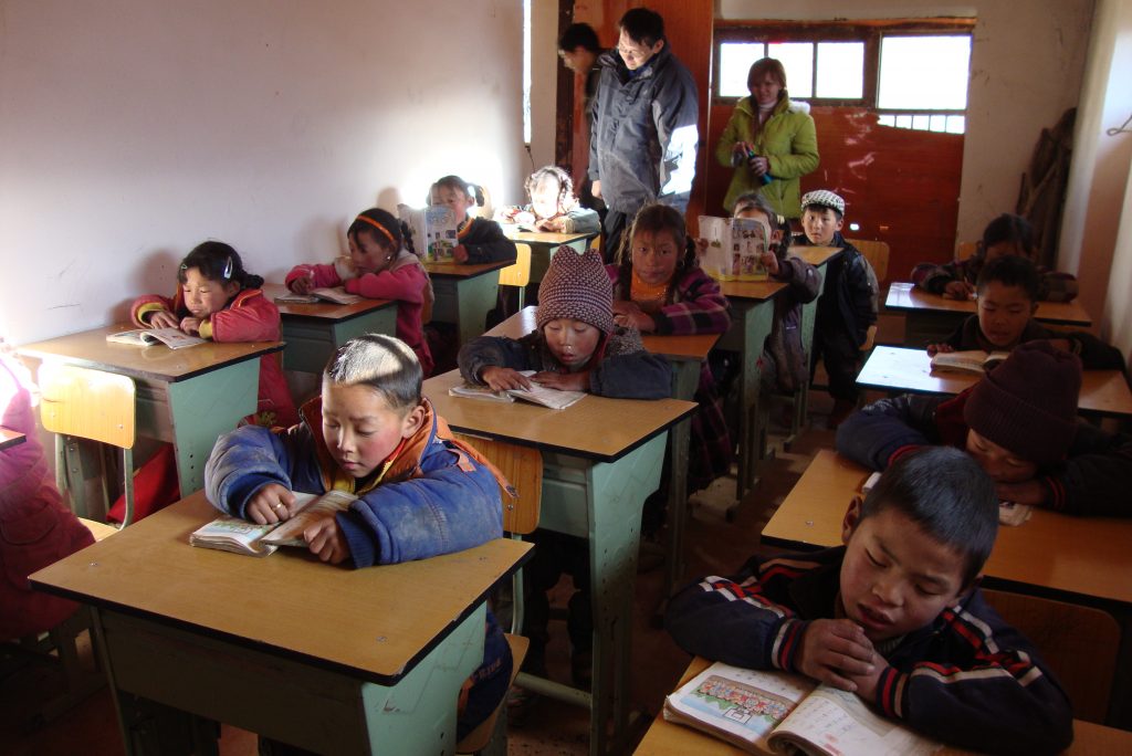 学校目前只有一名老师,学生20人。山顶气候环境十分恶劣,物资难以运送,俄尔村的盘⼭公路⼤部分路段在⼭的阴面积雪封道,要明年的春天才能融化后通⾏,之前运送到的书 架和书籍现在都寄放在⼭腰上⼀个村⼦的学校,需要⼈⼒搬运才能到⼭顶的俄尔村。但现在村⼦里面的劳动⼒都出外打⼯,留下老弱妇孺。因此书架和阅览桌只能等待明年春季后。 除了我们自⼰背负⼀些物资,其他其他的物资就需要村民来帮忙背运。