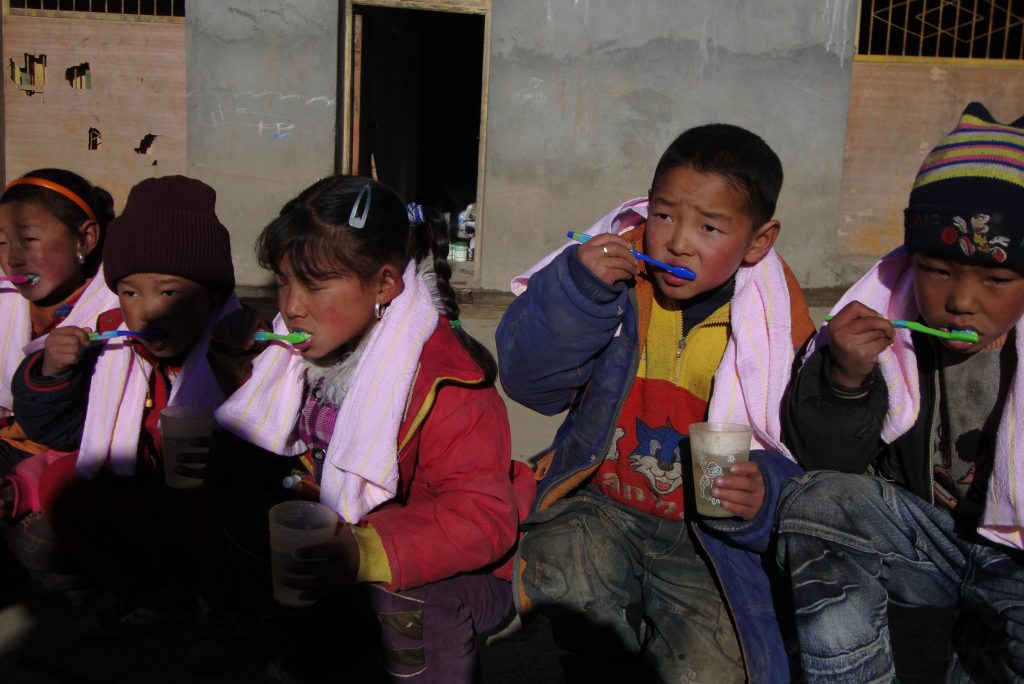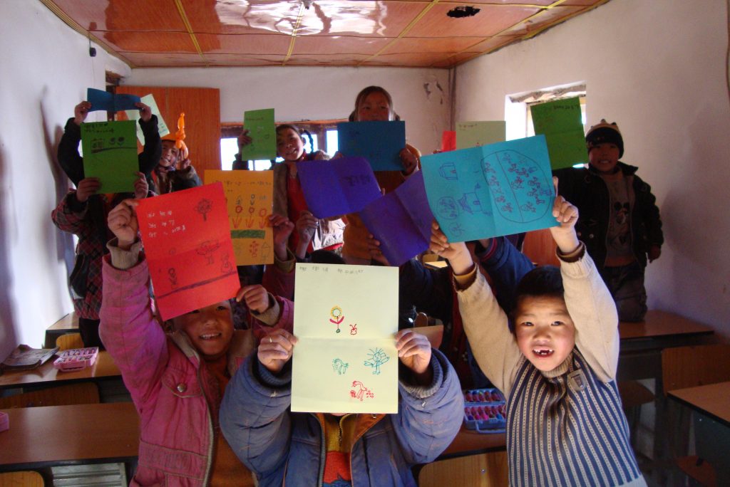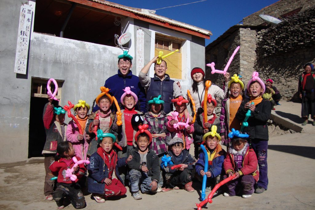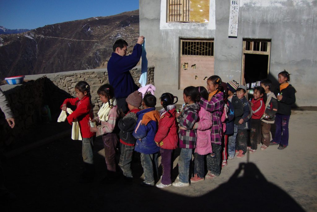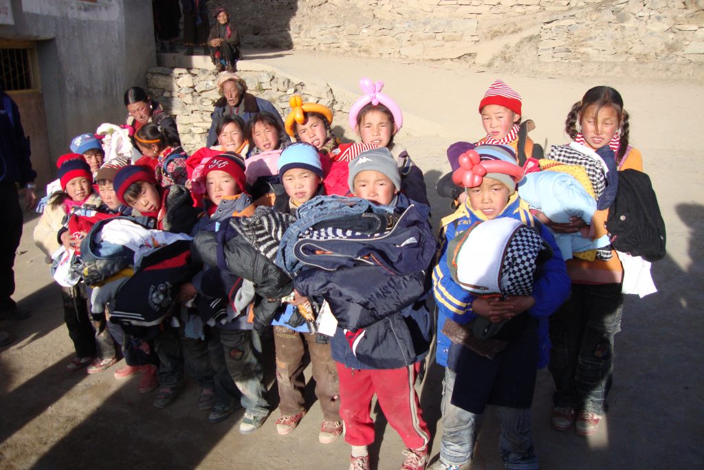 12月的⼭顶学校异常寒冷,我们特别为学⽣准备了电取暖器,电暖⼿袋,帽⼦围⼱,厚袜⼦和冬衣。在学校前的空地我们给孩子们上基础卫生课“刷牙漱口,洗手洗脸”,为孩子们 准备了趣味十足的造型气球,彩绘祝福卡等课程,同时把从树人小学募集来的旧冬衣发放给了孩子们。