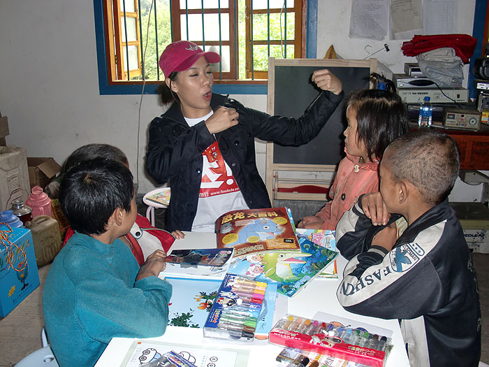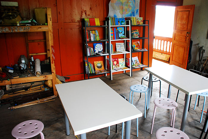 第⼆天⼀早,孩⼦们陆续抵达学校,看到了新图书室,整洁的书架和书桌,还有精致的图画书, 孩⼦们都聚精会神的听着志⼯们讲故事,⼀起唱歌,⼀起绘画,就在学校活动在持续 进⾏的时候,村民传来⼀个不幸的消息,回程的道路完全塌⽅连路基都断掉,队员必需立即撤除被困的龙元村,不然连夜的⼤雨有可能情况更严重会被滞留在里面….于是,我们带着 孩子们的不舍不情愿的离开了。