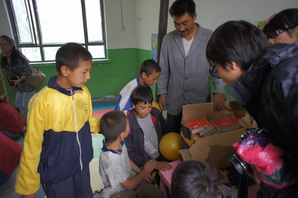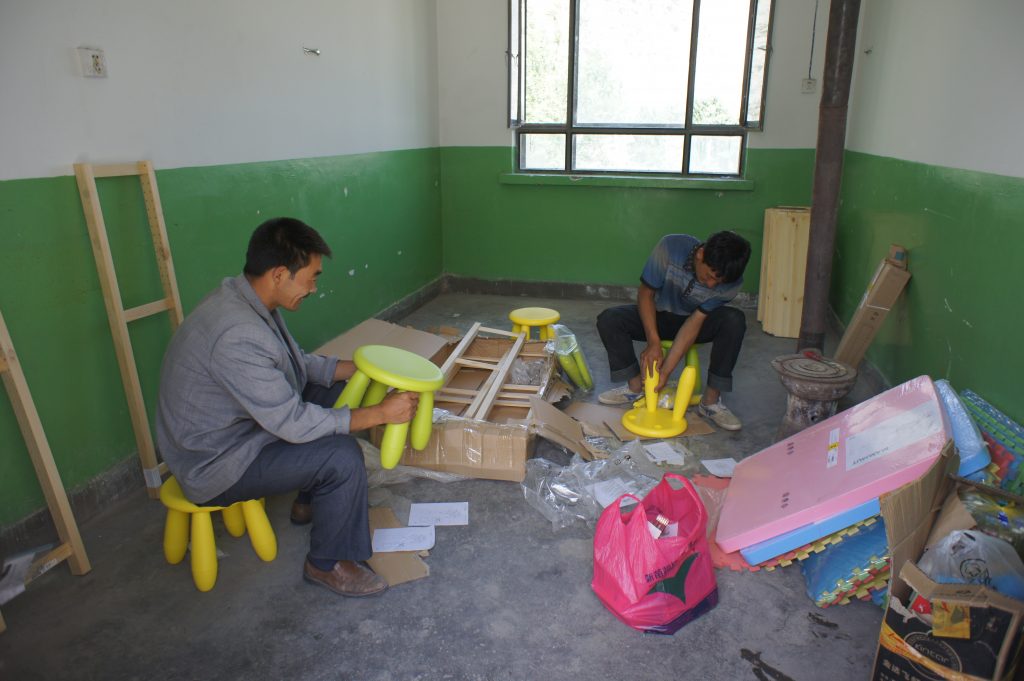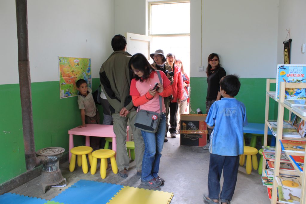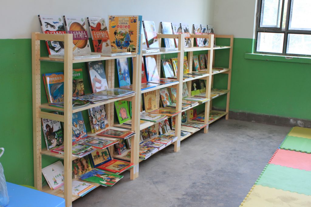2011年8月16日当我们带着物资赶到时已经是中午,简单的用过午饭后。我们开始清理学校为提前准备好的一间教师办公室。我们14人分工合作,男士主要是装订书架、搬运书 籍,女士则将书籍分类整理规整的摆放在书架上。用了一个下午的时间,一个小小的图书室就建设完成。