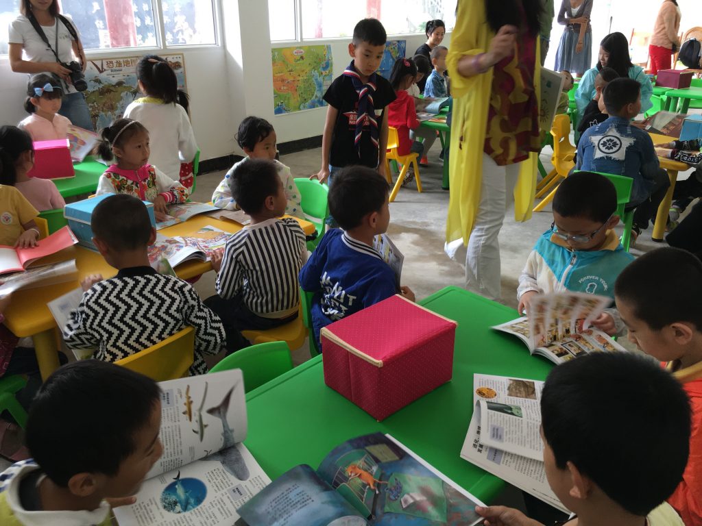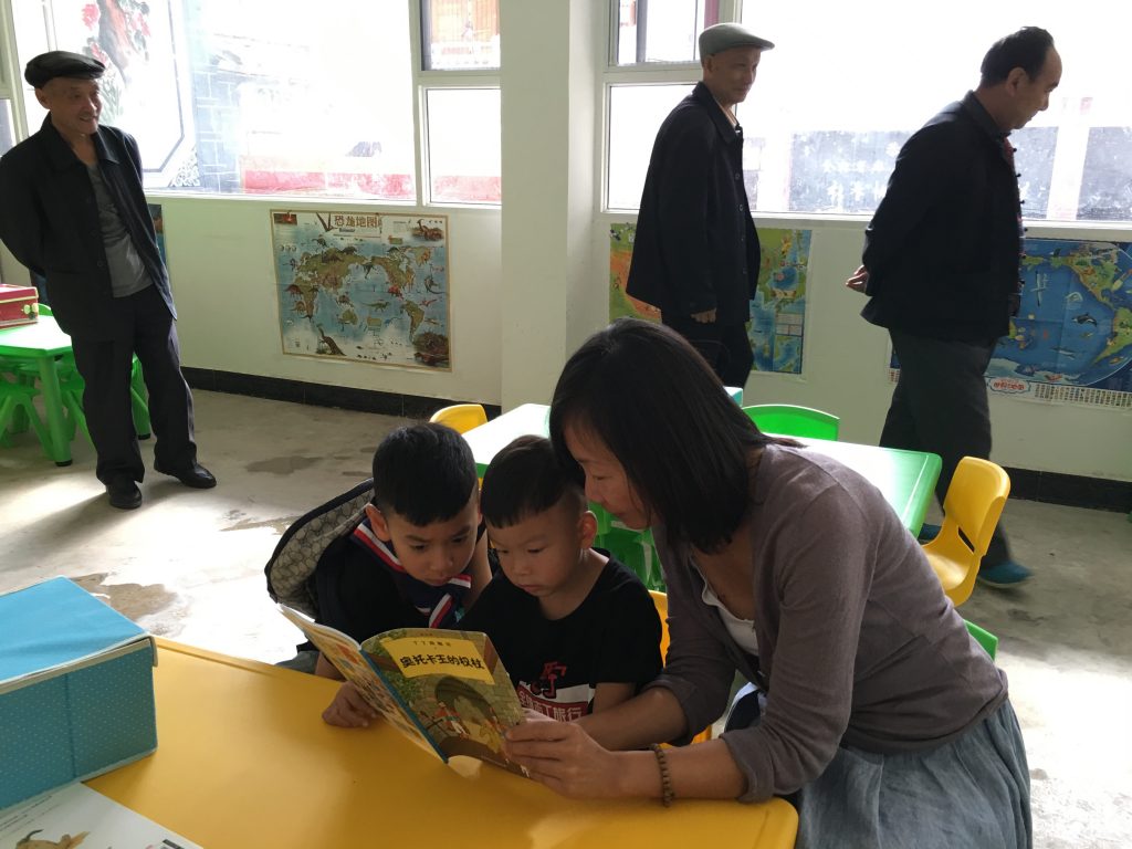 门一开,孩子们和老人们蜂拥而至,大家都找寻了一个位置坐下来看书,有的看到新奇的还要向小伙伴们分享。志工们也参与了读书大会中,带着一些不大识字的老人和小孩阅读。