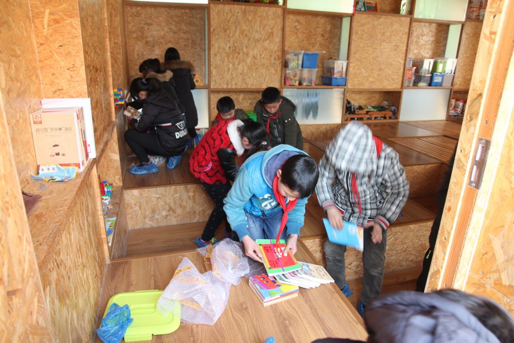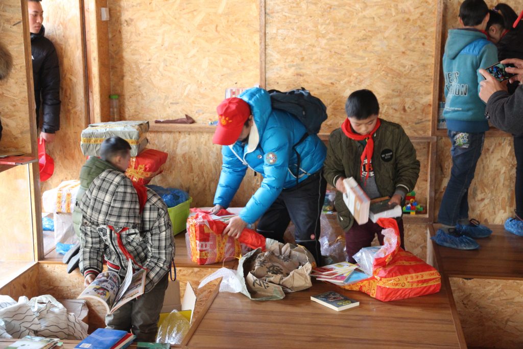 2017年3月8日,物资与志工们一同到达两岔河小学。到达后,志工们找到了用作图书室的房间开始对图书室进行布置。大家分工明确,不一会图书室便建成。