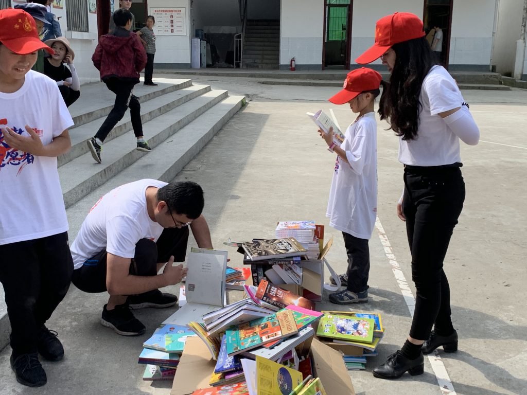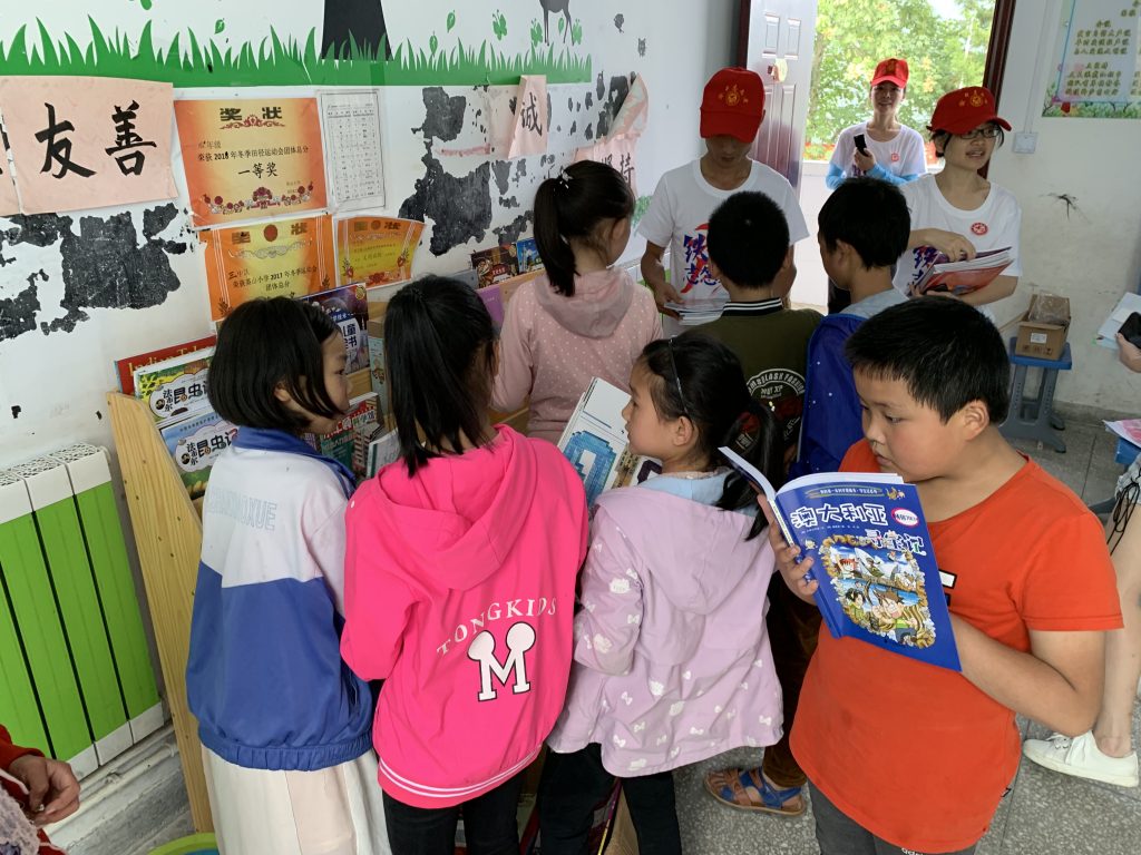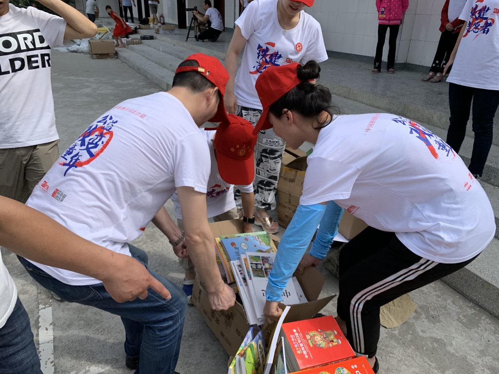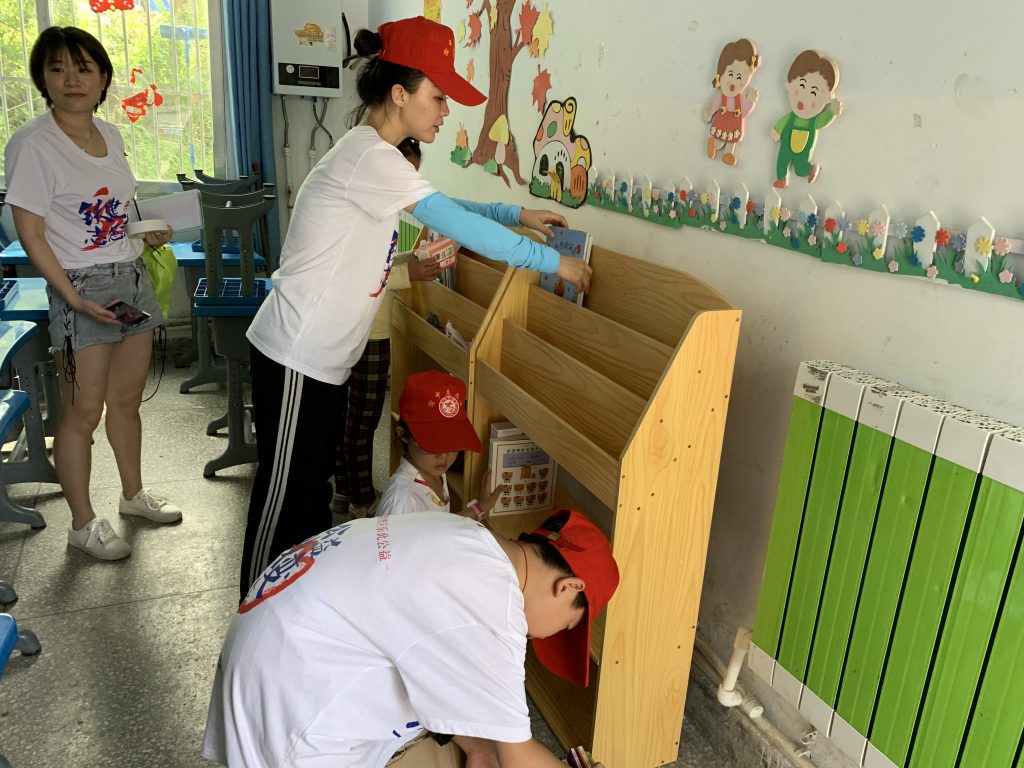 志愿者们无论是小还是大,齐齐上阵助力图书室的搭建,分类书籍的分类书籍,装订书架的装订书架。当书籍一摆放好,孩子们都迫不及待的上前拿了书起来阅读。