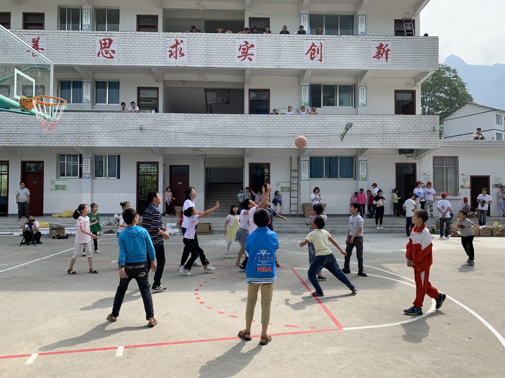 之后志愿者还陪着孩子们围坐在操场上聊天,其中经验丰富的小尹教练还给孩子们上了一堂有趣的篮球课。