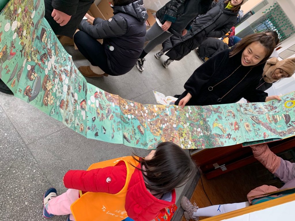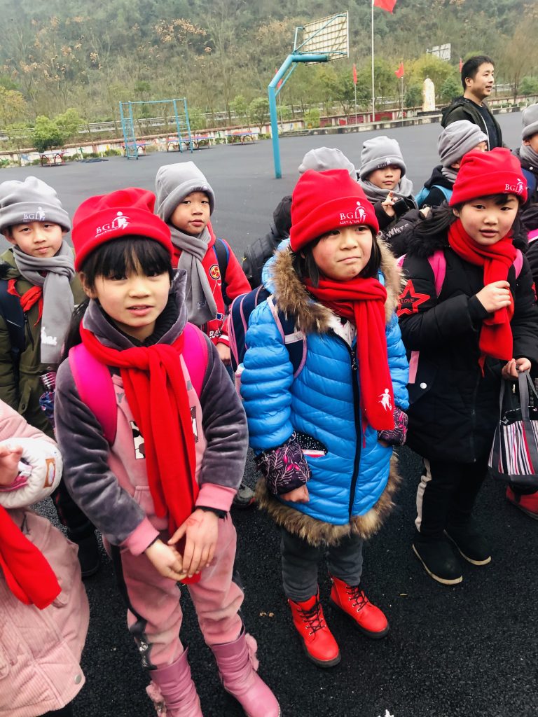 毛毛虫英语角还给孩子们带去了围巾和帽子让孩子们红红火火过新年。孩子们收到这份温暖十分的开心,一拿到手就立马试了起来。